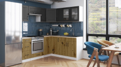 Rohová kuchyňská linka Romana grafit/artisan MAT