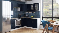 Rohová kuchyňská linka Romana bílá/tm.modrá MAT