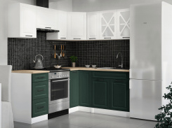 Rohová kuchyňská linka Astra bílá/tm.zelená MAT