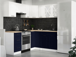Rohová kuchyňská linka Astra bílá/tm.modrá MAT