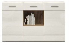 Komoda Thierry TH 4 bílá/dub ender/bílý lesk