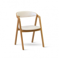 Křesílko s čalouněným sedákem i opěrkou. Materiál dub masiv, čalouněno eko kůží Sofia v bílé nebo černé barvě. Stohovatelné. Šířka židle: 46 Výška k sedáku: 47 Hloubka sedáku: 43 Výška židle: 79