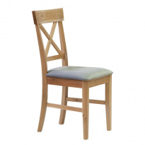 Stylová jídelní židle, dub masiv, čalouněný sedák. Šířka židle: 43 Výška k sedáku: 46 Hloubka sedáku: 41 Výška židle: 86