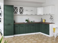Rohová kuchyňská linka Simea bílá/tm.zelená MAT