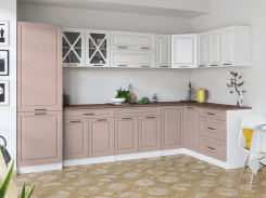 Rohová kuchyňská linka Simea bílá/růžová MAT