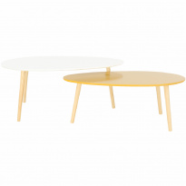 Set 2 konferenčních stolků, bílá HG / žltomedová HG, DOBLO
