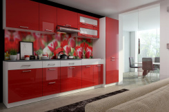 Kuchyňská linka Sanader 300 červený lesk/bílý pruh