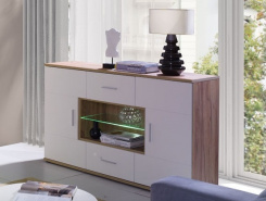Komoda s LED osvětlením Thierry TH 2 bílá/dub ender/bílý lesk