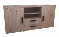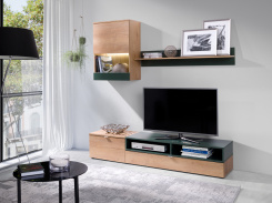Obývací stěna s LED osvětlením Thierry TH1 bílá/dub ender/bílý lesk