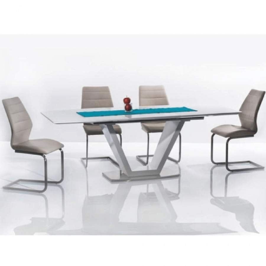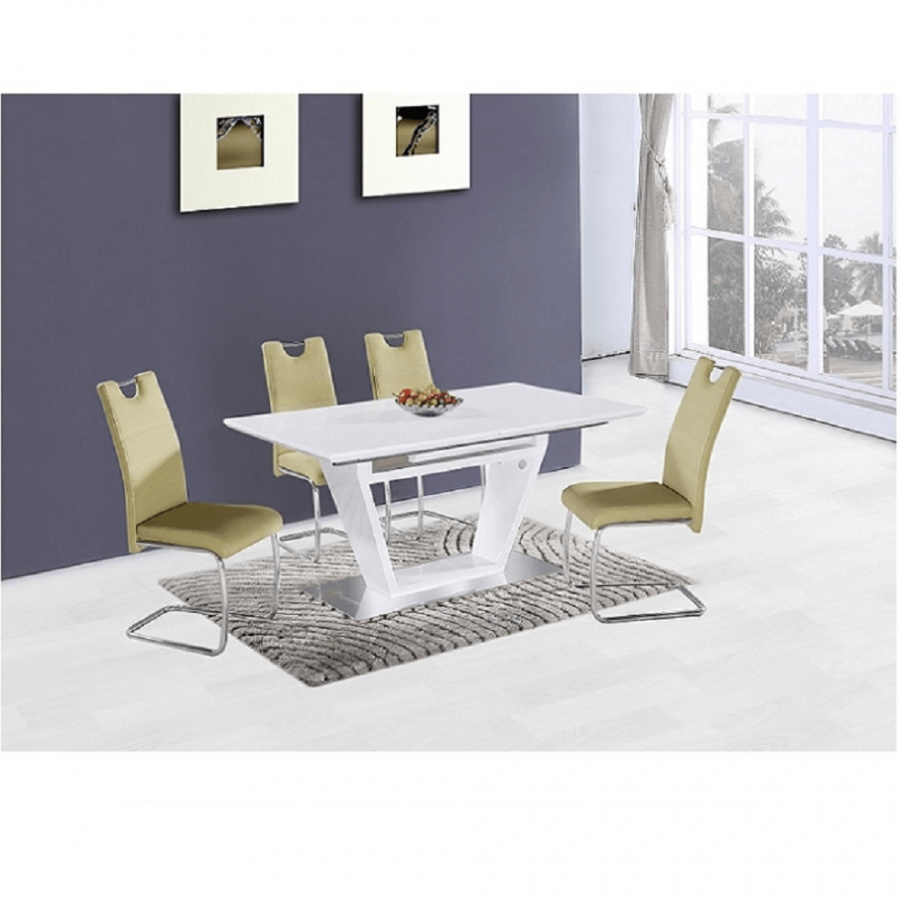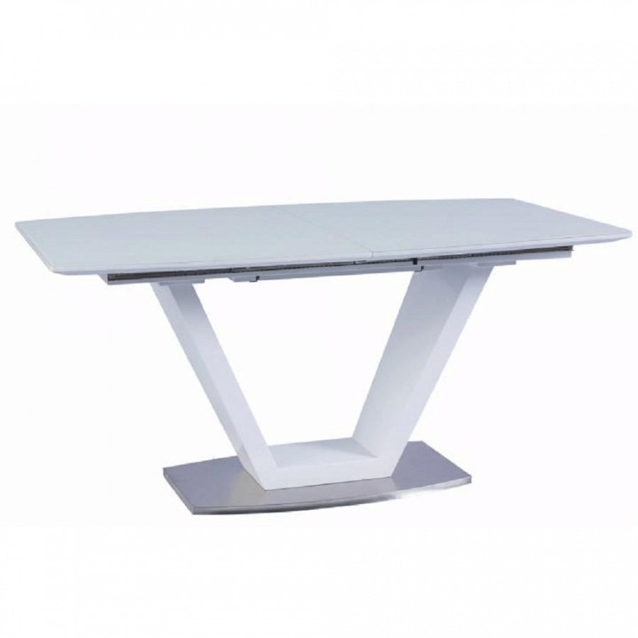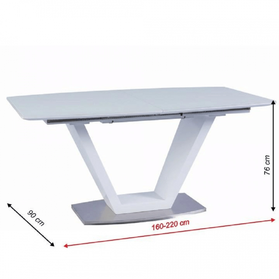 luxusní a designový rozkládací jídelní stůl, barevné provedení: bílá s extra vysokým leskem HG, materiál: MDF + oceľ, ŠxHxV: 160-220x90x76 cm.