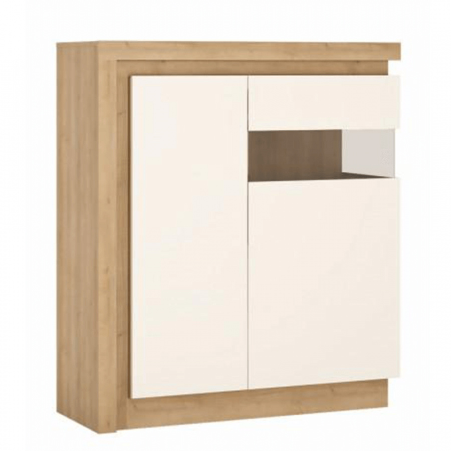 Komoda LYOV04P, dub riviera / bílá s extra vysokým leskem, LEONARDO