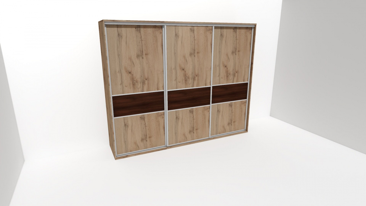 Skříň FLEXI 3 š.280cm v.240cm : 3x dveře dělené LTD Akácie skořice