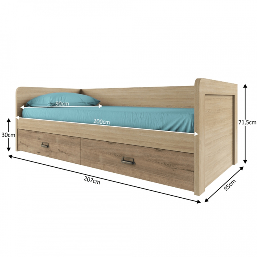 Postel 2S / 90, DTD laminovaná, dub madura / wellington, DIAZ