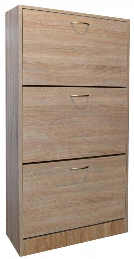 Jednoduchý tříklopný botník na 18 párů bot. Je vyrobený z lamina a nemá zadní stěnu. Zadní část je opatřena výztuhami. Je dodáván v demontu a součástí je montážní plánek včetně všech potřebných spojovacích materiálů.