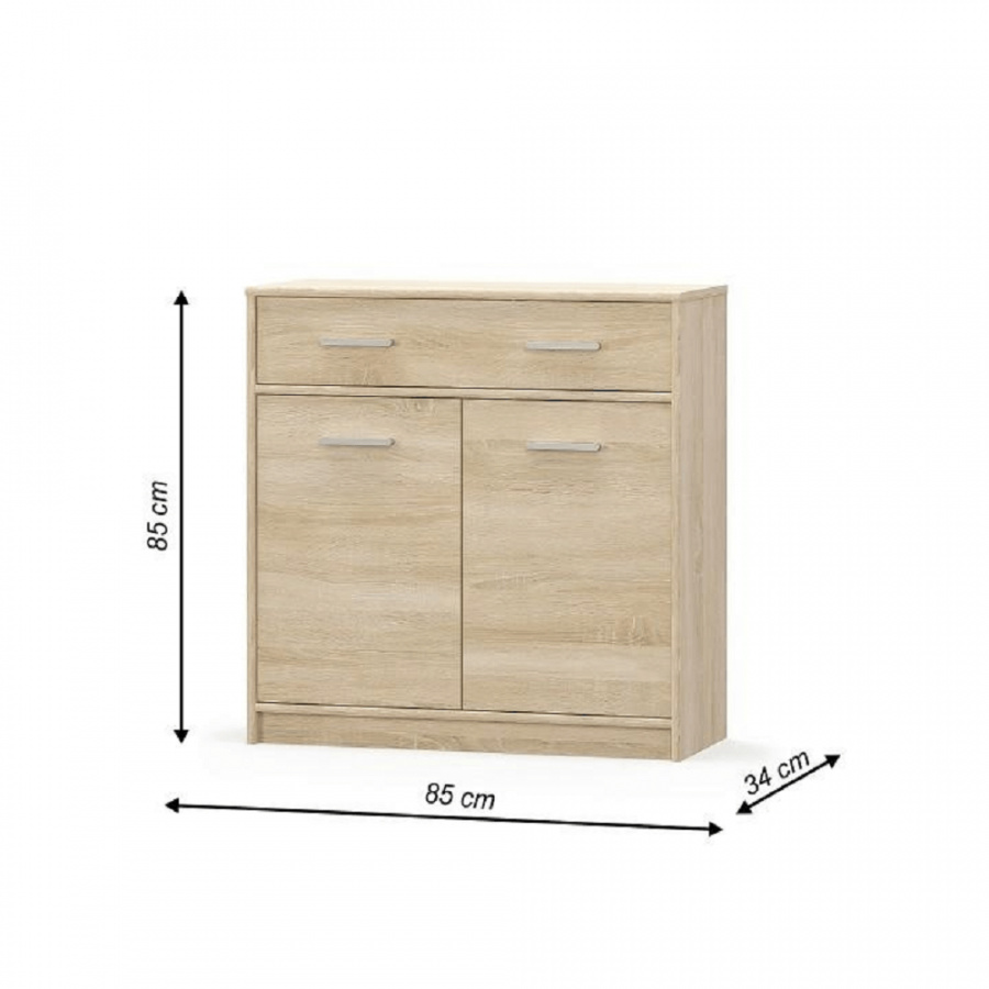 Komoda 2D1S TEYO Materiál: DTD laminovaná Barevné provedení: dub sonoma Rozměry (ŠxHxV): 83x34x85 cm Tloušťka materiálu: 16 mm Dodávána v demontu.