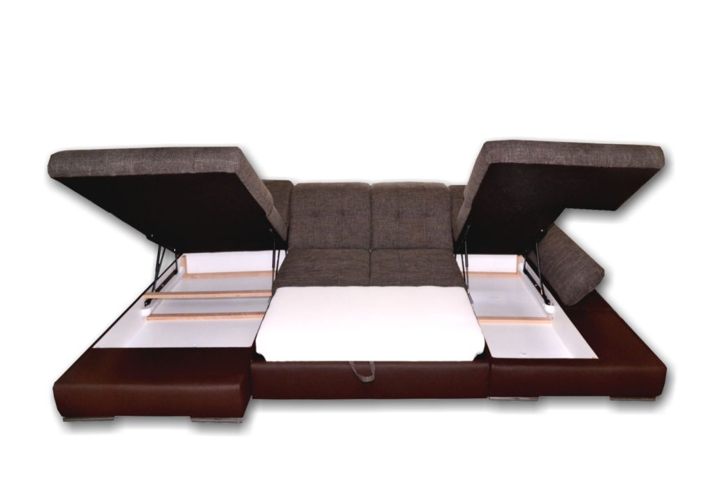 Komfortní sedací souprava 180x365x200 cm s polohovací područí a pěti nastavitelnými opěrkami hlavy. V obou přístavcích jsou objemné úložné prostory, pro snadnou obsluhu vybavené plynovými písty. Sedací souprava je velmi pohodlná a v případě, že sháníte sedačku, na které budete moci lenošit, je dobrou volbou právě pro vás. Jednoduchým rozložením soupravy získáte pohodlnou postel 280x135 cm vhodnou k příležitostnému spaní. Sedací soupravu si můžete objednat v pravém nebo levém provedení (na úvodním obrázku je pravá provedení).