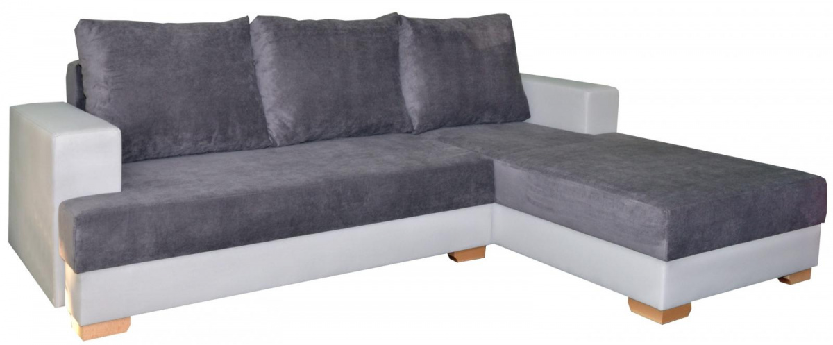 Sedací souprava Roxy 245x175 cm je vyrobená z kvalitního pevného potahu v kobinaci s bílou koženkou. Nožky jsou z přírodního masivu. Sedací souprava je vybavená rozkladem se sklopným zadním čelem.