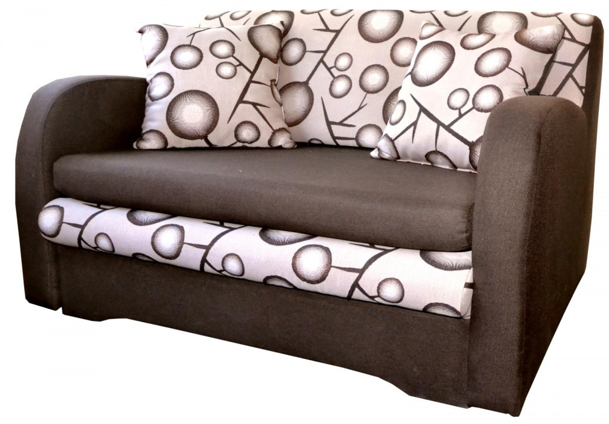 Moderní pohovka v kombinaci vzorované a jednobarevné látky. Jednoduchým rozložením vznikne lůžko k občasnému přespání. Pohovka má menší úložný prostor. Výplň sedáku je vyrobena z pur (polyuretanové) pěny. Pohovka je vyrobena ze 100% PES materiálu, snadno čistitelného suchou pěnou. Pohovka má dva volně ložené polštáře, které jsou již v ceně pohovky.