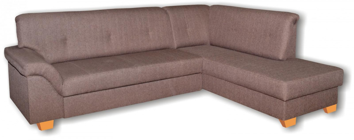 Moderní rohová rozkládací sedací souprava 250x180 cm s velkým úložným prostorem. Nožky jsou dřevěné v odstínu olše. Sedací souprava je vybavená rozkladem s vynášecím systémem postele.