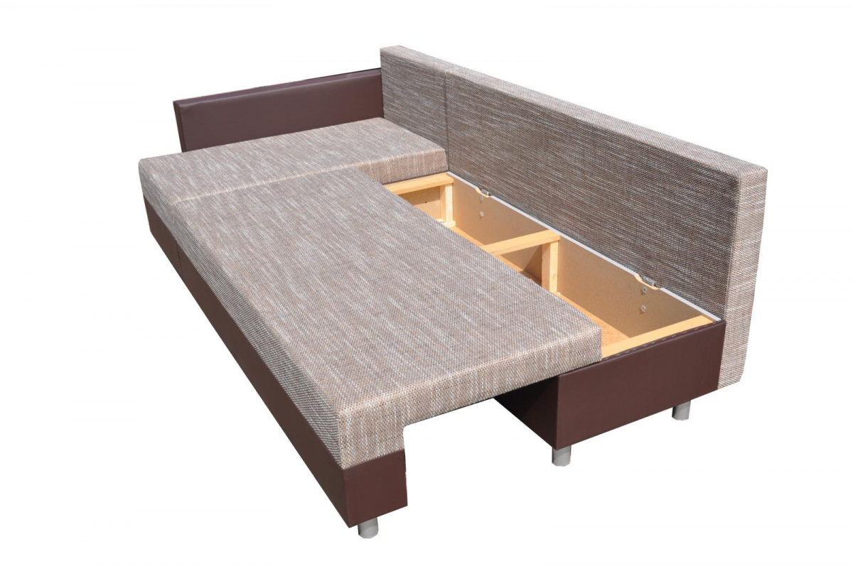 Rohová sedací souprava 225x120 cm Frank je ideálním řešením pro milovníky jednoduchých a moderních tvarů. Sedací souprava je vybavená rozkladem se sklopným zadním čelem. Nohy sedací soupravy jsou plastové. Souprava je potažena kvalitním úpletem. Po rozložení max. nosnost: 2 x 80 kg.