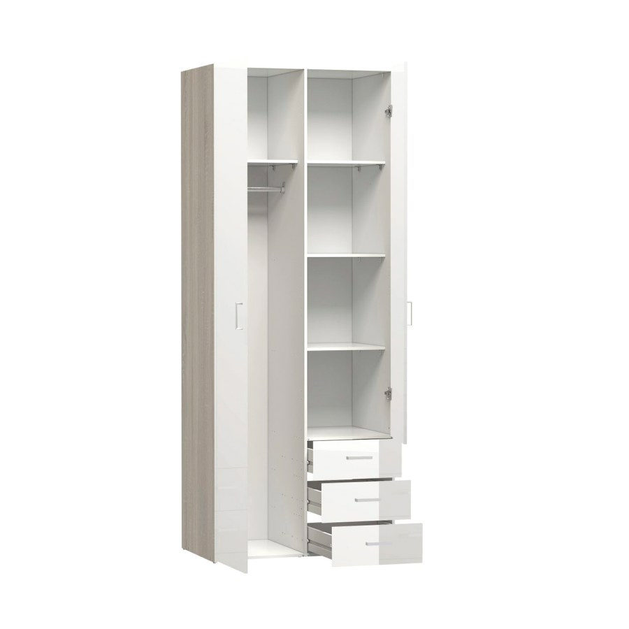 Šatní skříň Sid nabízí dostatek úložného prostoru a univerzální využití. Výborně se hodí např. do ložnice, do dětského i studentského pokoje, ale i do pracovny či předsíně. Skříň je vyrobená v jednoduchém a nadčasovém skandinávském stylu. Má rovné a čisté linie, které vytvoří útulný, pohodový a příjemný interiér. Korpus skříně je z lamina v dekoru sonoma, dvířka jsou v bílém lesku. Vnitřní vybavení skříně je vyobrazeno v doplňkových fotografiích. Skříň je také vybavena praktickými zásuvkami, které můžete využít např.na spodní prádlo. Je dodávaná v demontu. Součástí balení je schématickým montážní návod včetně všech spojovacích prvků. Vyobrazené dekorace nejsou v ceně. U tohoto typu skříně mohou být některé nepohledové hrany desek nebo plochy neopáskovány v barvě skříně (především vrchní půda či hrany dveří, apod.). Vyobrazené dekorace nejsou v ceně.