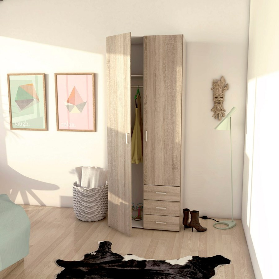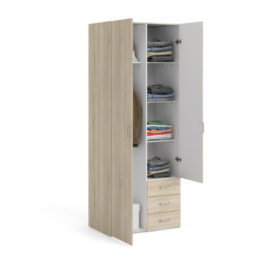 Šatní skříň Sid nabízí dostatek úložného prostoru a univerzální využití. Výborně se hodí např. do ložnice, do dětského i studentského pokoje, ale i do pracovny či předsíně. Skříň je vyrobená v jednoduchém a nadčasovém skandinávském stylu. Má rovné a čisté linie, které vytvoří útulný, pohodový a příjemný interiér. Vnitřní vybavení skříně je vyobrazeno v doplňkových fotografiích. Skříň je také vybavena praktickými zásuvkami, které můžete využít např.na spodní prádlo. Je dodávaná v demontu. Součástí balení je schématickým montážní návod včetně všech spojovacích prvků. Vyobrazené dekorace nejsou v ceně. U tohoto typu skříně mohou být některé nepohledové hrany desek nebo plochy neopáskovány v barvě skříně (především vrchní půda či hrany dveří, apod.). Vyobrazené dekorace nejsou v ceně.