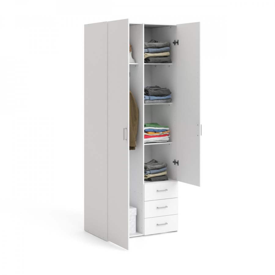 Šatní skříň Sid nabízí dostatek úložného prostoru a univerzální využití. Výborně se hodí např. do ložnice, do dětského i studentského pokoje, ale i do pracovny či předsíně. Skříň je vyrobená v jednoduchém a nadčasovém skandinávském stylu. Má rovné a čisté linie, které vytvoří útulný, pohodový a příjemný interiér. Vnitřní vybavení skříně je vyobrazeno v doplňkových fotografiích. Skříň je také vybavena praktickými zásuvkami, které můžete využít např.na spodní prádlo. Je dodávaná v demontu. Součástí balení je schématickým montážní návod včetně všech spojovacích prvků. Vyobrazené dekorace nejsou v ceně. U tohoto typu skříně mohou být některé nepohledové hrany desek nebo plochy neopáskovány v barvě skříně (především vrchní půda či hrany dveří, apod.). Vyobrazené dekorace nejsou v ceně.