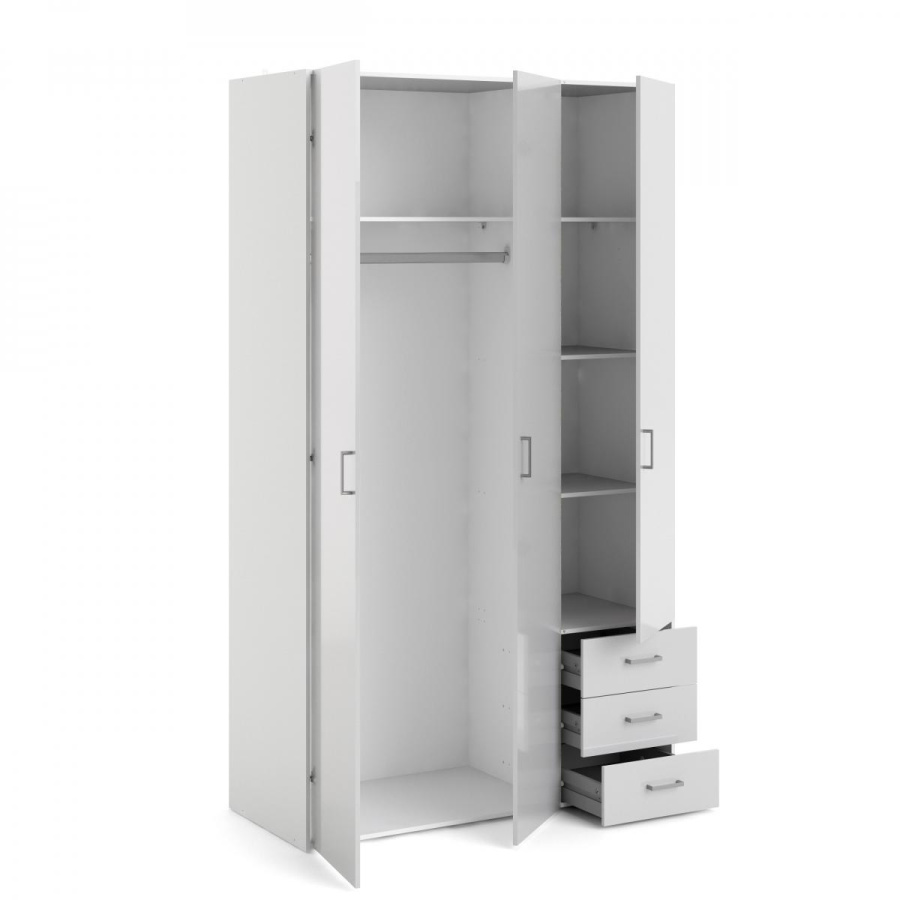 Skříň Sid 3d3s bílá/bílý lesk