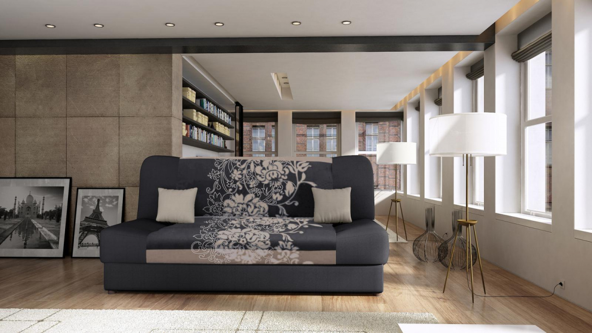 Rozkládací pohovka s kvalitním jádrem tvořeným vinutými pružinami a PUR pěnou je příjemným spojením elegantního designu, funkčnosti a atraktivní ceny. Disponuje praktickým úložným prostorem na přikrývky o velikosti 170x73 cm. Díky rozkládací konstrukci ji snadno přeměníte na lůžko o rozměrech 195x120 cm, které můžete kdykoliv nabídnout hostům, kteří u vás zůstanou přes noc.