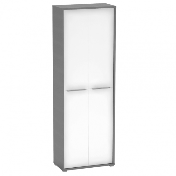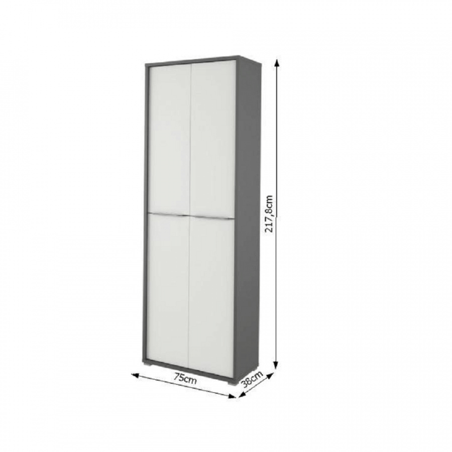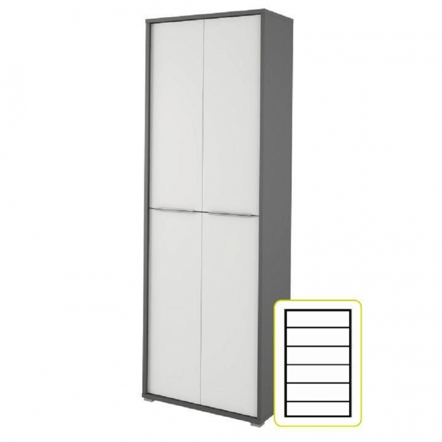 Vysoká skříň Riom TYP 5 Barevné provedení: grafit / bílá Materiál: DTD laminovaná Rozměry (ŠxHxV): 75x38x217,8 cm Tloušťka materiálu: 16/22 mm Dodávané v demontu