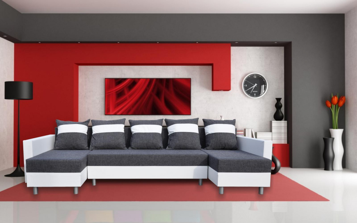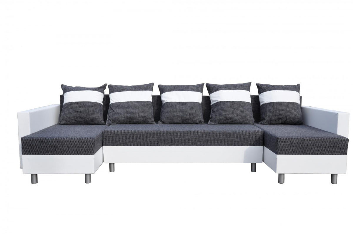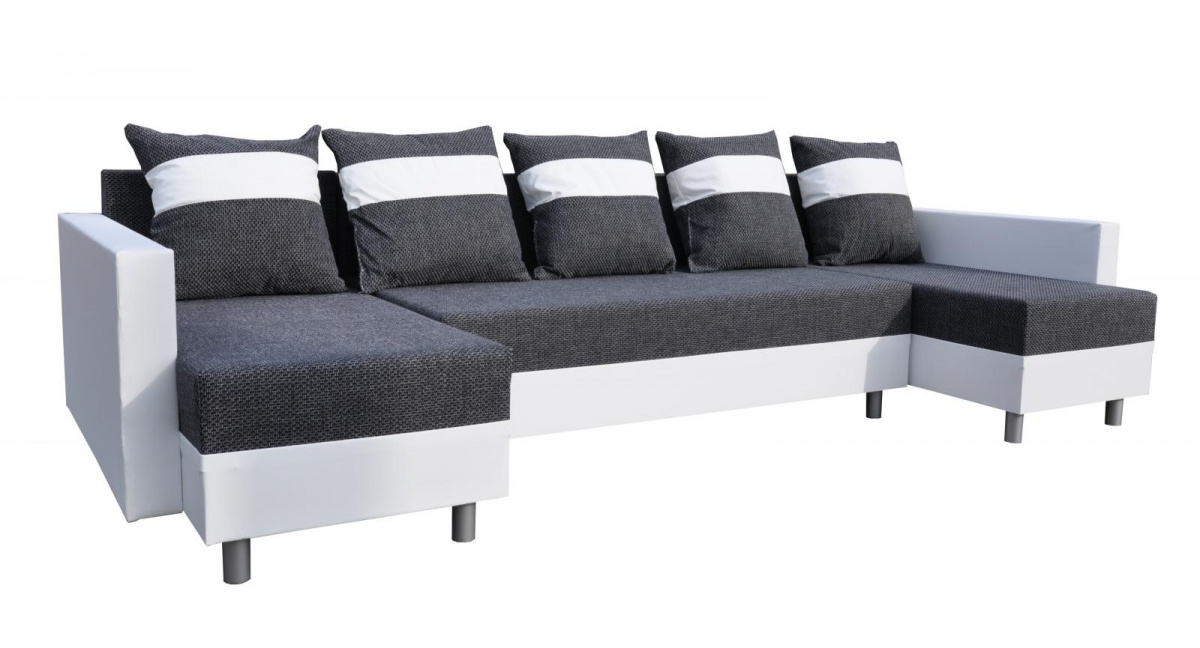Sedací souprava Frank, konstruovaná do tvaru U, je ideálním řešením pro milovníky jednoduchých a moderních tvarů. Sedací souprava je vybavená rozkladem se sklopným zadním čelem. Nožky sedací soupravy jsou plastové. Sedací souprava je potažena kvalitní látkou Baltic 96 v kombinaci s bílou koženkou. Zadní část je očalouněna originalním potahem jako sedací část. Po rozložení vznikne lůžko k občasnému spaní o rozměru 110x270 cm. Uvnitř sedací soupravy se nachází úložný prostor na lůžkoviny.