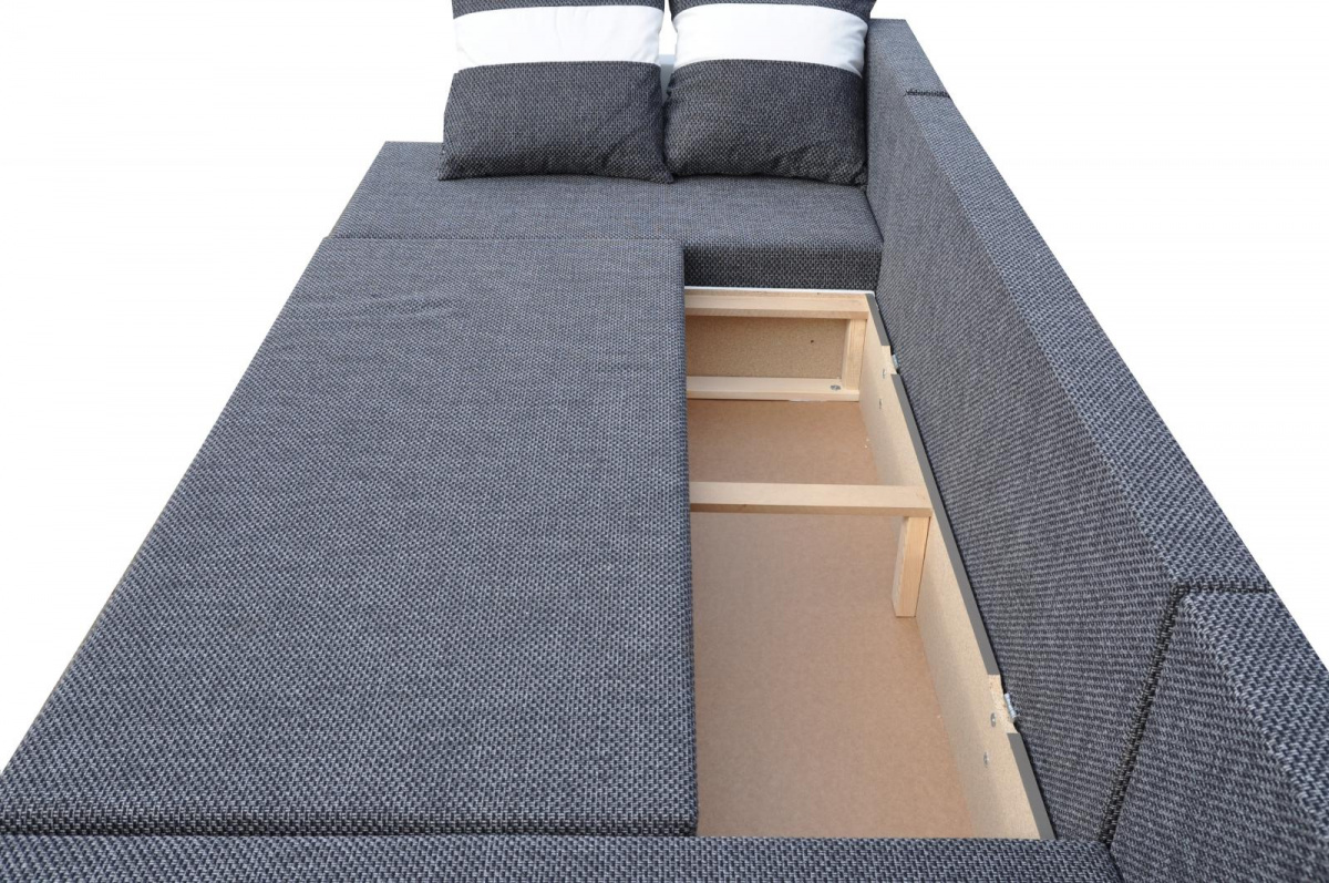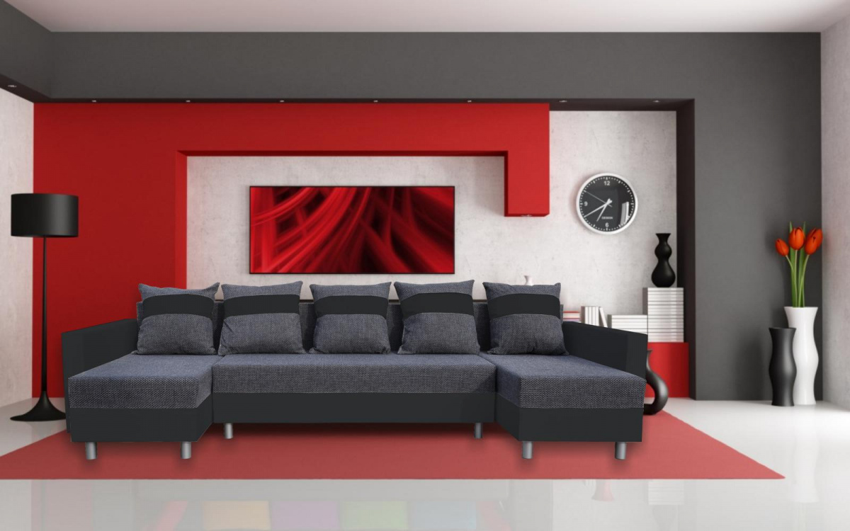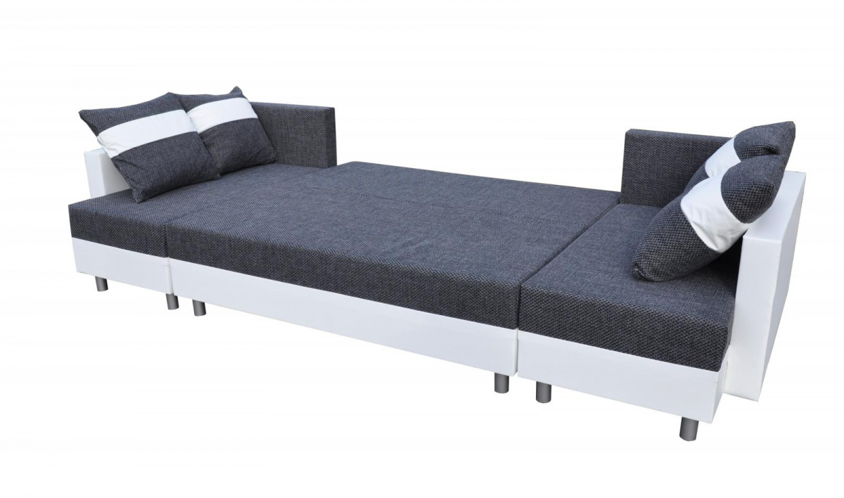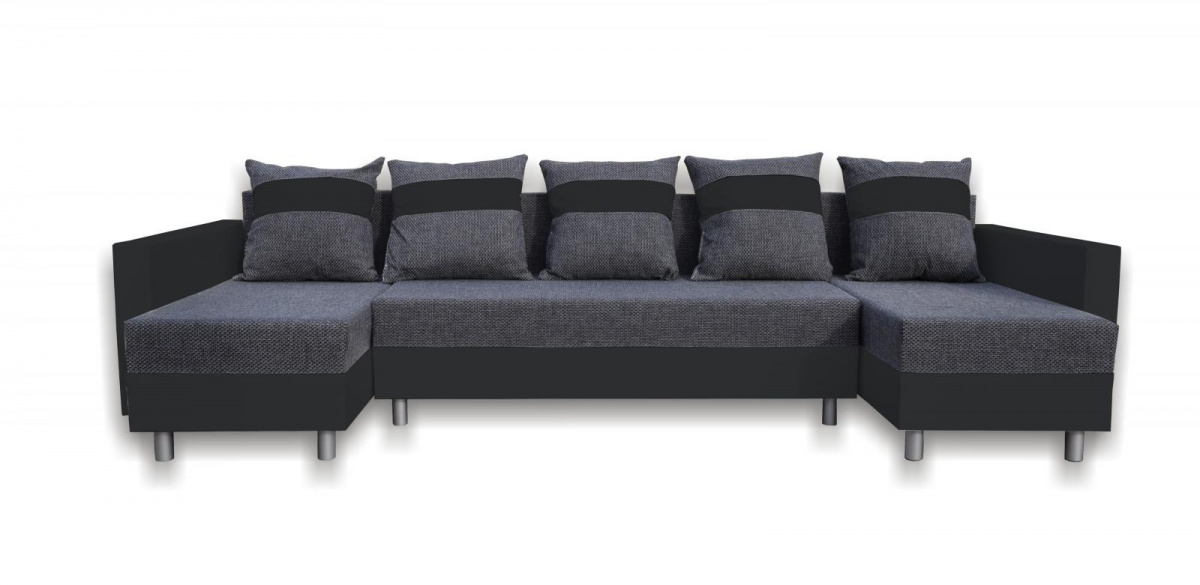 Sedací souprava Frank, konstruovaná do tvaru U, je ideálním řešením pro milovníky jednoduchých a moderních tvarů. Sedací souprava je vybavená rozkladem se sklopným zadním čelem. Nožky sedací soupravy jsou plastové. Sedací souprava je potažena kvalitní látkou Baltic 96 v kombinaci s černou koženkou. Zadní část je očalouněna originalním potahem jako sedací část. Po rozložení vznikne lůžko k občasnému spaní o rozměru 110x270 cm. Uvnitř sedací soupravy se nachází úložný prostor na lůžkoviny.