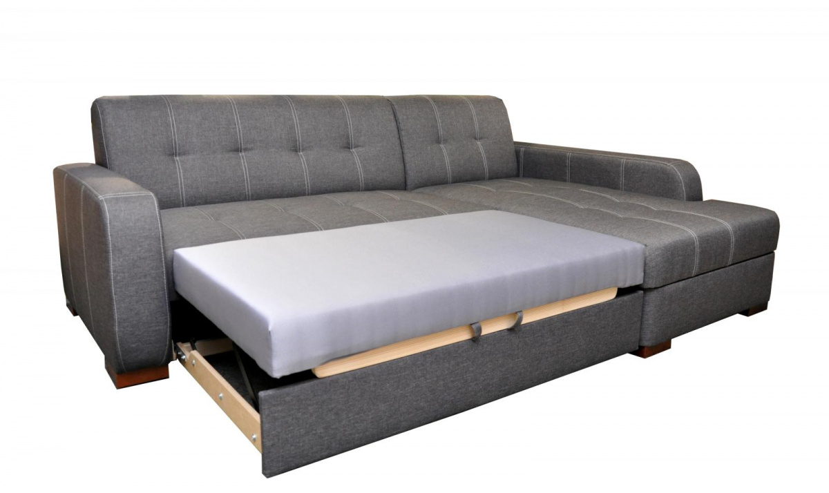 Moderní rohová sedací souprava Falco je rozkládací, jednoduchým rozkladem vznikne lůžko vhodné k příležitostnému spaní. Sedačka má praktický úložný prostor. Sedací souprava má originální kontrastní prošívání na sedácích. Sedací souprava je vyrobena z dřevěného masivu, vnitřek sedačky je vyroben použitím vinutých pružin v kombinaci s kvalitní PUR pěnou gramáže 30. Sedací souprava je potažena kvalitní potahovou látkou Sawana 05, vybírat můžete ze 3 barevných provedení. Na malých ilustračních fotografiích je zobrazen způsob rozkladu a lůžka. K sedací soupravě je možno dokoupit křeslo a polštáře.