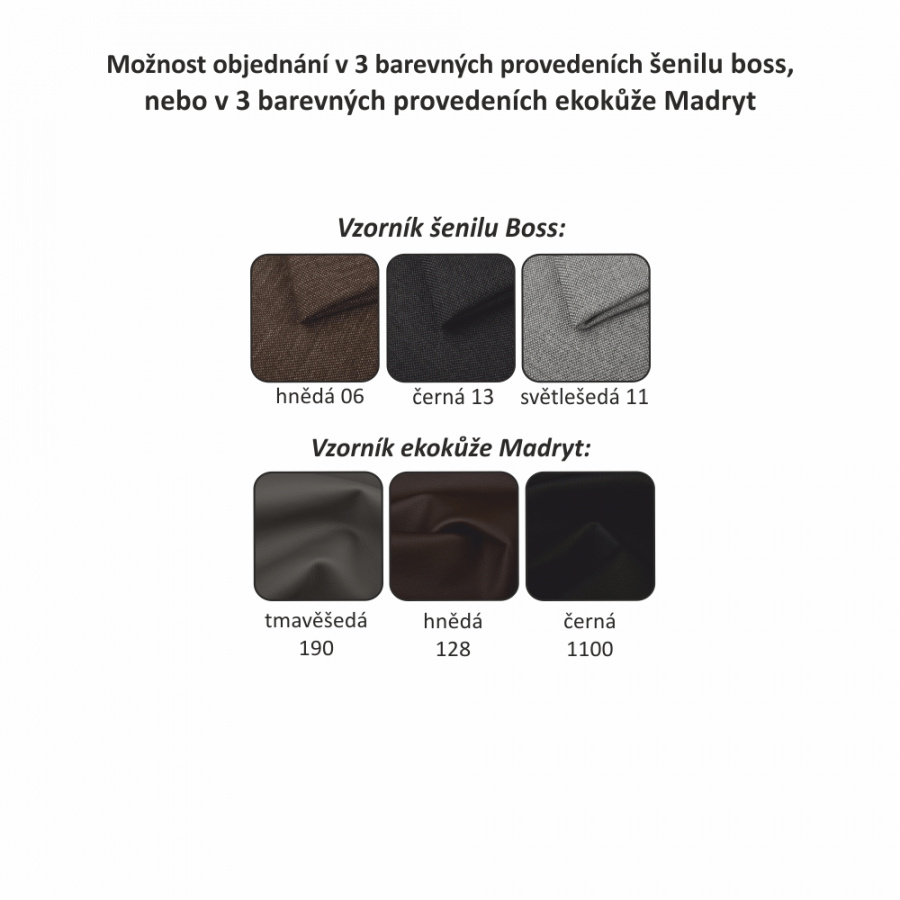 Možnost objednání ve 3 barevných provedeních ekokůže a šenil Boss.