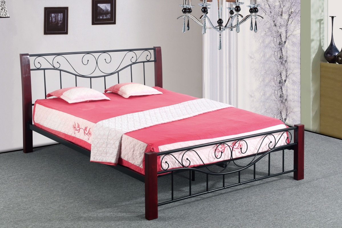 Elegantní postel Parma 160 cm je dodávána s lamelovým roštem bez matrace, v provedení černý kov + antická třešeň. Ložná plocha postele je 160x200 cm. Nosnost postele je 2x90 kg při doporučené tloušťce matrace min. 18 cm.