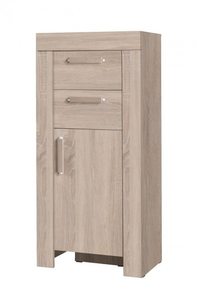 Komoda Cezanne je vyrobena z kvalitního lamina v odstínu sonoma. Komoda má 2 zásuvky a dvířka. Součástí je také 1 police. Komoda je dodávána v demontu. Součástí je montážní plánek včetně všech potřebných spojovacích materiálů.