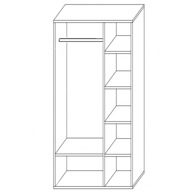 Vybavení a uspořánání skříně je vyobrazeno na obrázku vedle fotografie. Skříň je dodávána v demontu. Součástí je montážní plánek včetně všech potřebných spojovacích materiálů. Pro inspiraci jsou přiloženy fotografie pokojů, které jsou vybaveny prvky ze systému Bruce.