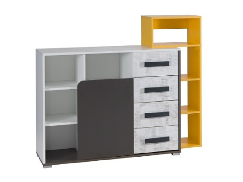 Komoda se zásuvkami je vyrobena z vysoce kvalitní laminované dřevotřísky, odolné vůči poškrábání, vlhkosti a vysokým teplotám. Všechny hrany jsou opatřeny ABS lištou, která zajistí trvanlivost a odolnost proti nárazu. Díky svému uspořádání nabízí dostatek úložného prostoru. Tato komoda je vhodným doplňkem do dětského, nebo studentského pokoje, ale výborně se hodí např. i do kanceláře. Ke komodě doporučujeme dokoupit žlutou policovou přístavbu, kterou můžete vidět na doplňkové fotografii. Pro inspiraci jsou přiloženy fotografie pokojů, které jsou vybaveny prvky ze systému Bruce.