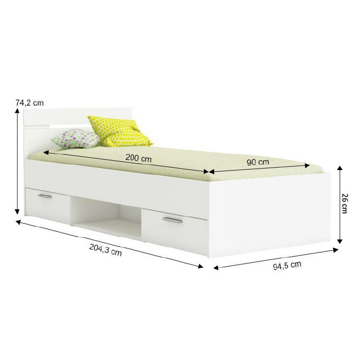 Postel MICHIGAN s šuplíky a s odkládacím prostorem. Materiál: DTD foliovaná. Barevné provedení: bílá Rozměry (ŠxHxV): 94,5x204,3x74,2 cm. Plocha na spaní: 90x200 cm. K posteli je možné zakoupit kovový rošt 90x200 a matraci s rozměrem 90x200 cm na základě naší nabídky.