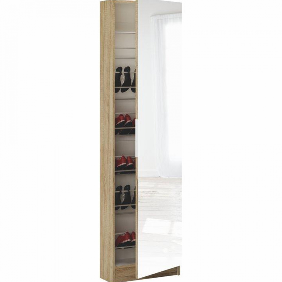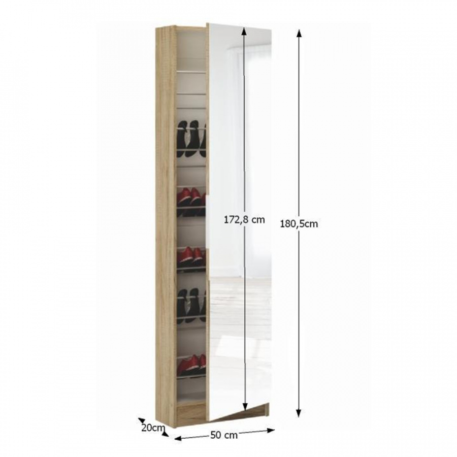 Šestiřadý botník se zrcadlem KAPATER, DTD fóliovaná, provedení: dub sonoma. Rozměry: (ŠxVxH): 50x20x180,5 cm.