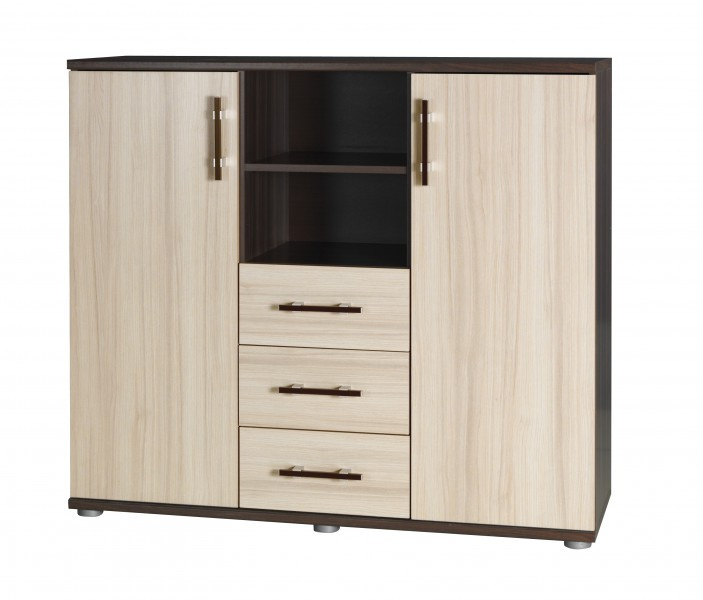 Komoda s dvířky a zásuvkami Inez je vyrobena z kvalitního lamina v odstínu jasan tmavý/jasan světlý. Díky svým rozměrům a vybavení, poskytuje dostatek úložného prostoru. Komodou můžete podle Vaší fantazie vybavit obývací pokoj, ložnici, studentský pokoj, nebo pracovnu. Je dodávána v demontu a součástí je montážní plánek včetně všech potřebných spojovacích materiálů. Pro inspiraci jsou přiloženy fotografie místností, které jsou vybaveny tímto nábytkem. Tyto sestavy také najdete v naší nabídce. Vyobrazené dekorace nejsou v ceně.