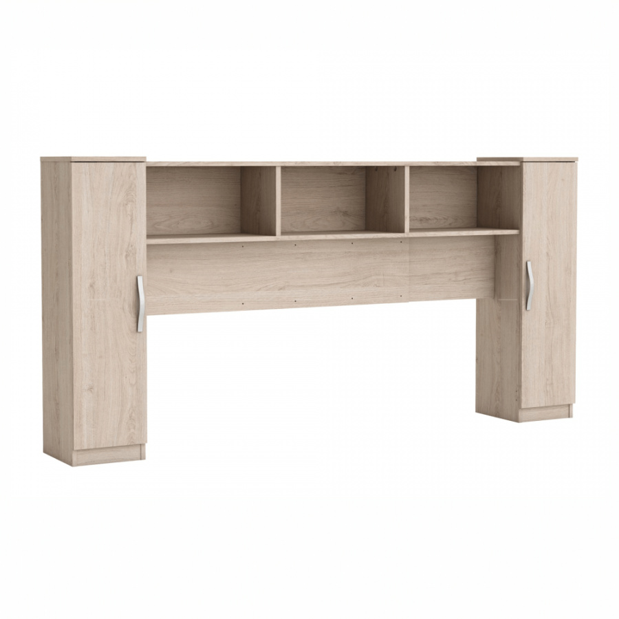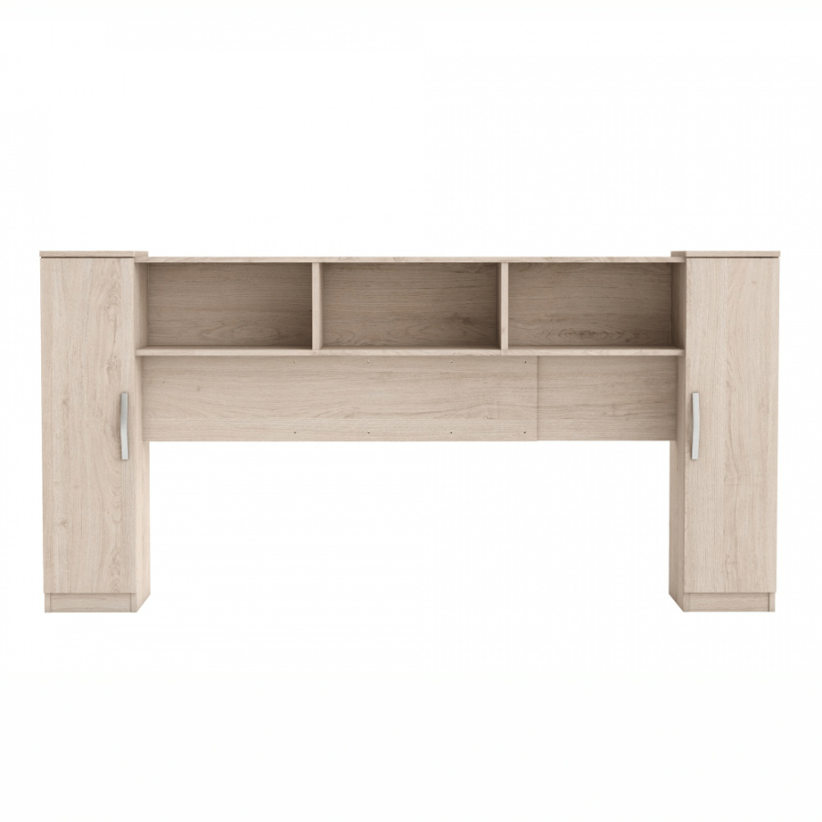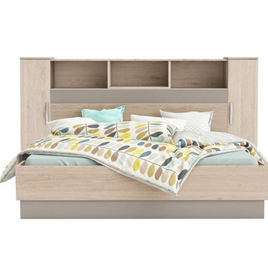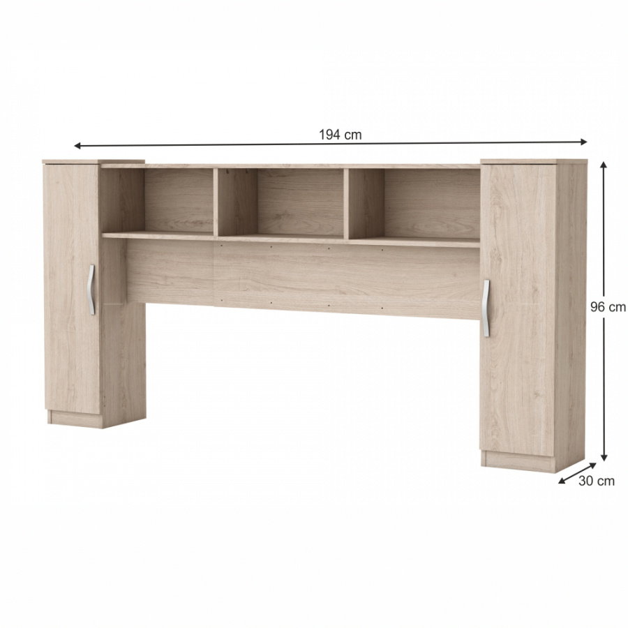 Moderní policové záhlaví k posteli GRAPHIC o rozměru 160x200 cm. Součástí záhlaví jsou police a skříňky po obou stranách postele, které mohou sloužit jako náhrada nočních stolků. Materiál a fabebné provedení: DTD foliovaná, dub arizona / šedá. Rozměry (ŠxVxH): 194x96x30 cm.