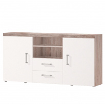 Moderní komoda se čtyřmi zásuvkami, poskytující dostatek úložného prostoru. Materiál a provedení: DTD foliovaná, dub arizona / šedá. Rozměry (ŠxVxH): 86,6x80,8x41,9 cm.