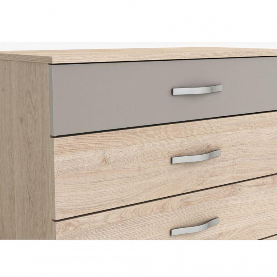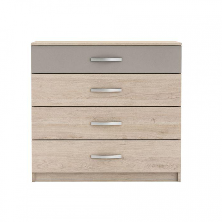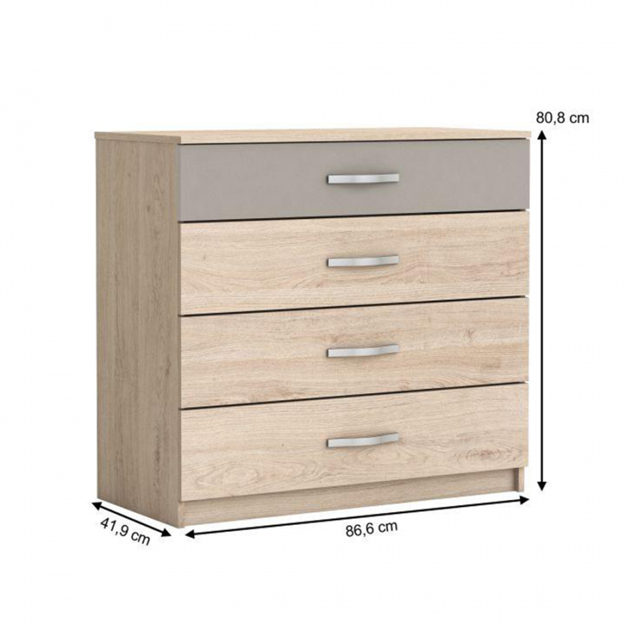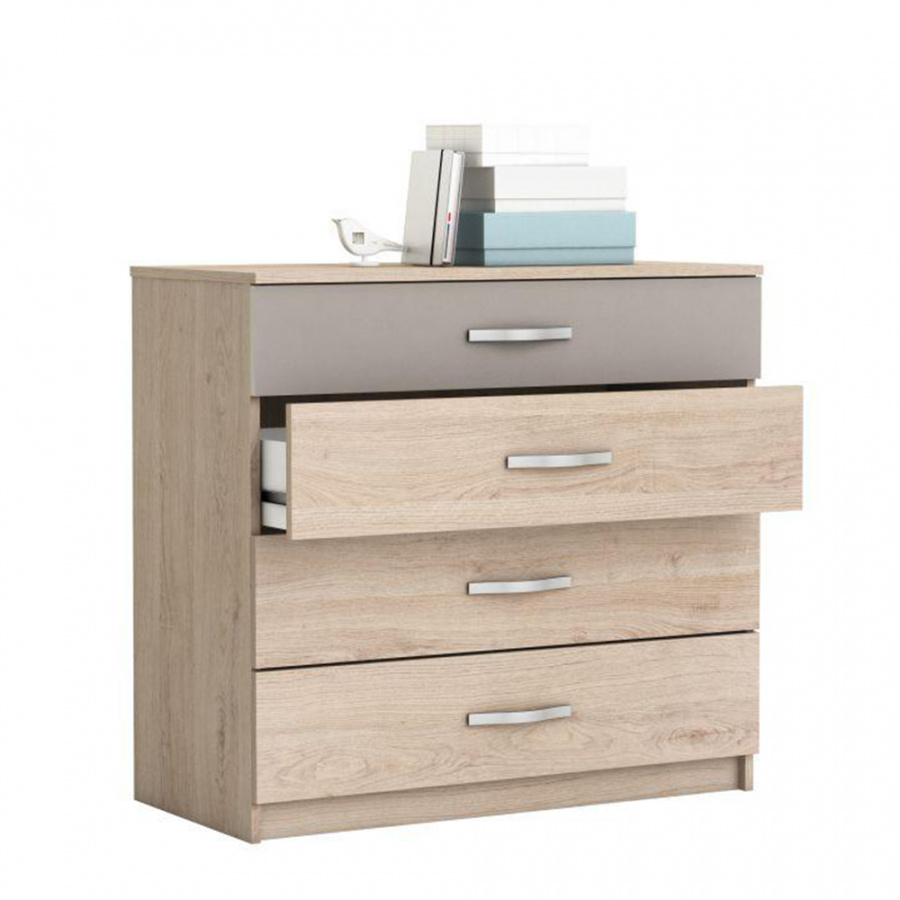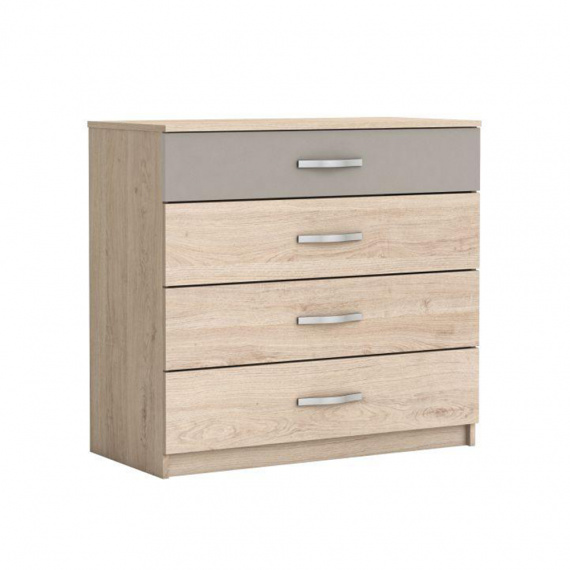 Moderní komoda se čtyřmi zásuvkami, poskytující dostatek úložného prostoru.