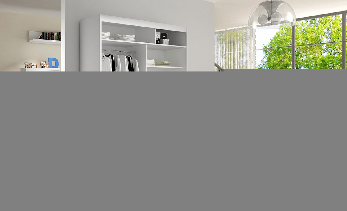 Moderní a elegantní design skříně osloví i náročné zákazníky. Eleganci podtrhují dlouhé stříbrné úchyty a moderní nádech dodává kombinace bílé s černými pruhy na dveřích skříně. Je vyrobena z lamina o síle 16 mm a hrany jsou ukončeny ABS lištou. Vodící lišty jsou vyrobeny z odolného hliníku a splňují požadavky pro každodenní užívání. Díky svému uspořádání poskytuje dostatek úložného prostoru. Skvěle se hodí do ložnice, předsíně, dětského, nebo studentského pokoje. Skříň je dodávána v demontu a součástí je montážní plánek včetně všech potřebných spojovacích materiálů. Vyobrazené dekorace nejsou v ceně.