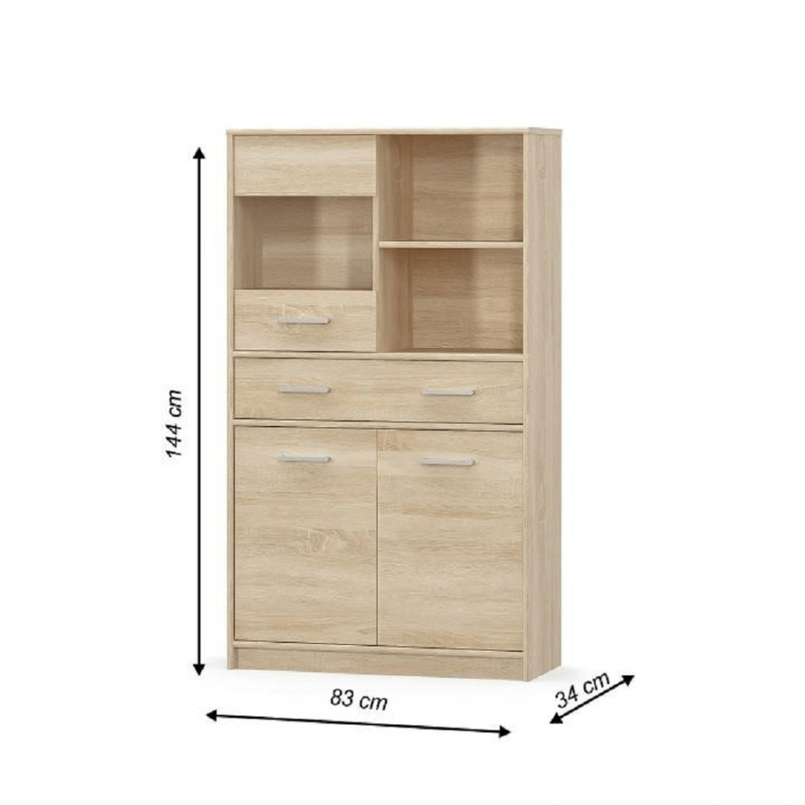 Vitrína 2D1W1S TEYO Materiál: DTD laminovaná Barva: dub sonoma Rozměry (ŠxHxV): 83x34x144 cm Tloušťka materiálu: 16 mm Dodávané v demontu.