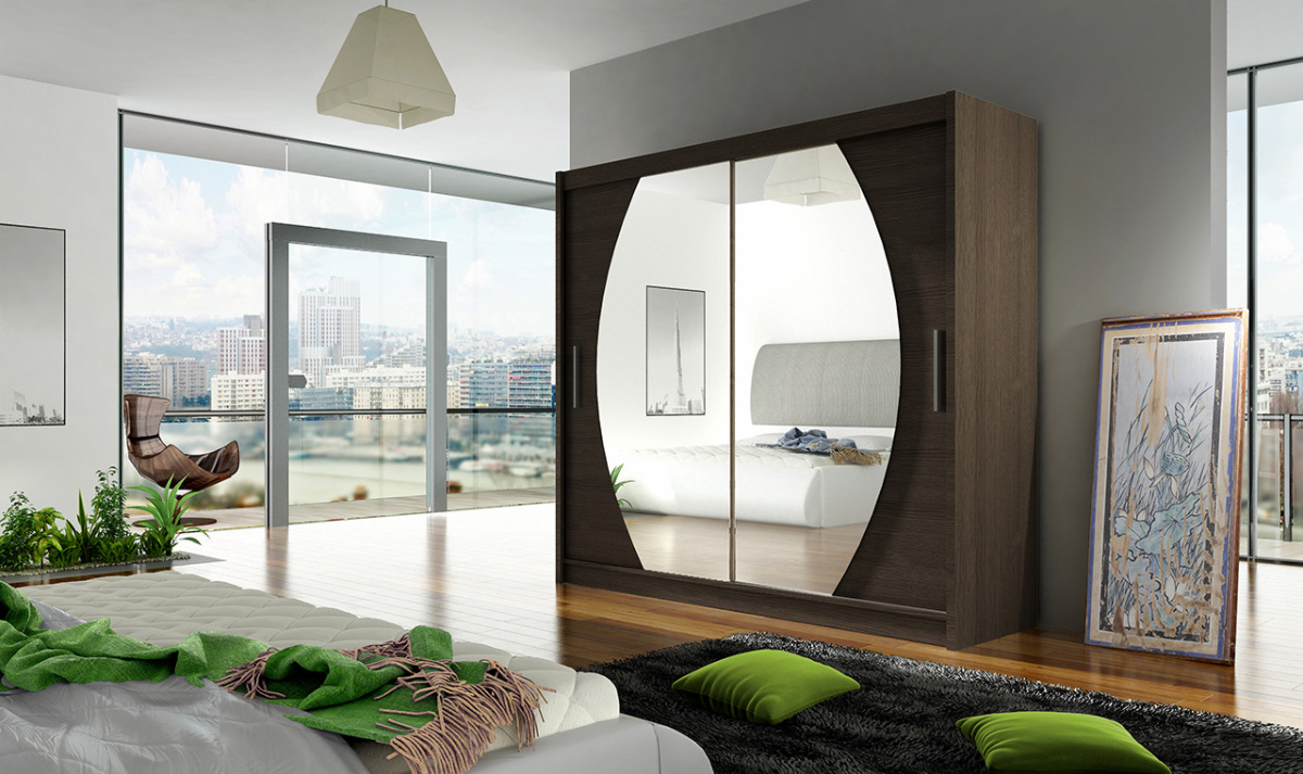 Skříň Berger s posuvnými dveřmi, je vyrobena z kvalitního lamina o síle 16 mm a hrany jsou ukončeny ABS lištou. Vodící lišty jsou vyrobeny z odolného hliníku a splňují požadavky pro každodenní užívání. Skříň je doplněna zrcadly zaříznutými do oblouku, která jí dodávají elegantní vzhled a místnost opticky zvětší a prosvětlí. Nabízíme ji ve čtyřech odstínech. Díky svým rozměrům a uspořádání poskytuje dostatek úložného prostoru. Skříň je dodávána v demontu a součástí je montážní plánek včetně všech potřebných spojovacích materiálů. Vyobrazené dekorace nejsou v ceně.