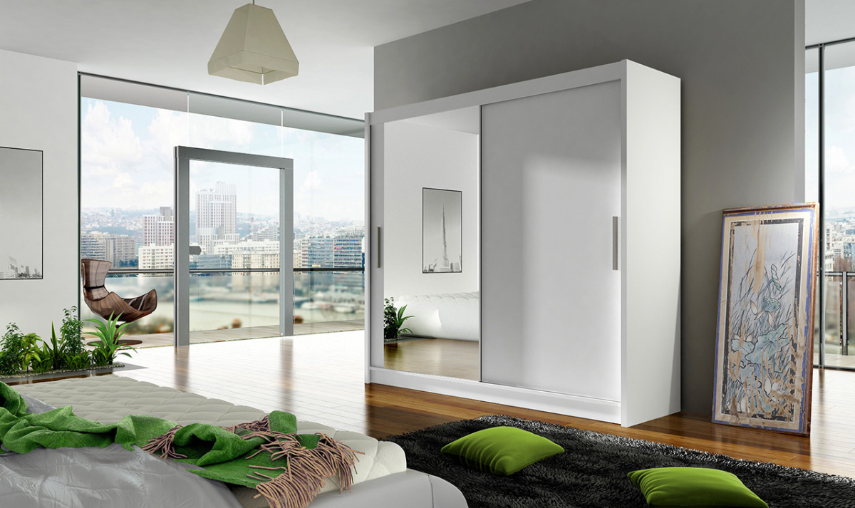 Skříň Berger s posuvnými dveřmi, je vyrobena z kvalitního lamina o síle 16 mm a hrany jsou ukončeny ABS lištou. Vodící lišty jsou vyrobeny z odolného hliníku a splňují požadavky pro každodenní užívání. Skříň je doplněna zrcadlem, které jí dodává elegantní vzhled a místnost opticky zvětší a prosvětlí. Nabízíme ji ve čtyřech odstínech. Díky svým rozměrům a uspořádání poskytuje dostatek úložného prostoru. Skříň je dodávána v demontu a součástí je montážní plánek včetně všech potřebných spojovacích materiálů. Vyobrazené dekorace nejsou v ceně.
