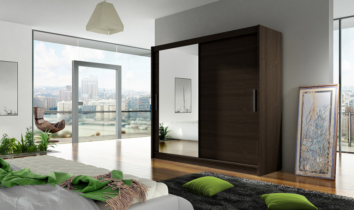 Skříň Berger s posuvnými dveřmi, je vyrobena z kvalitního lamina o síle 16 mm a hrany jsou ukončeny ABS lištou. Vodící lišty jsou vyrobeny z odolného hliníku a splňují požadavky pro každodenní užívání. Skříň je doplněna zrcadlem, které jí dodává elegantní vzhled a místnost opticky zvětší a prosvětlí. Nabízíme ji ve čtyřech odstínech. Díky svým rozměrům a uspořádání poskytuje dostatek úložného prostoru. Skříň je dodávána v demontu a součástí je montážní plánek včetně všech potřebných spojovacích materiálů. Vyobrazené dekorace nejsou v ceně.