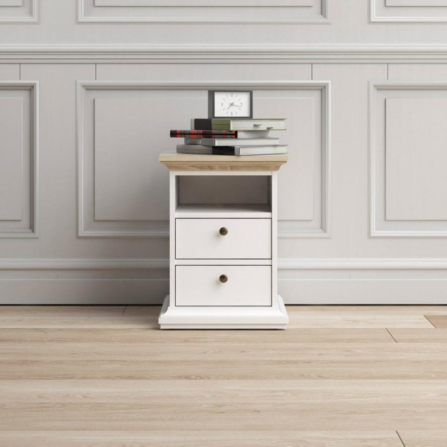 Noční stolek Provence poskytuje dostatek prostoru na lamičku, budík nebo knihu. Je vybavený praktickými zásuvkami, do kterých si můžete uložit drobnosti, které potřebujete mít vždy blízko po ruce. Stolek je dodávaný v demontu. Součástí je montážní návod včetně všech spojovacích prvků. Cena je uvedena za noční stolek bez doplňků a dekorací.
